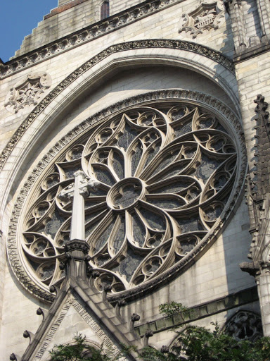 Outro elemento arquitetônico da arte gótica é a rosácea. Sua forma circular, dividida em finos raios de pedra semelhantes ao de uma roda. Tinha para o cristão da época, um significado duplamente simbólico: ao sol, símbolo de Cristo , e a rosa, símbolo de Maria.